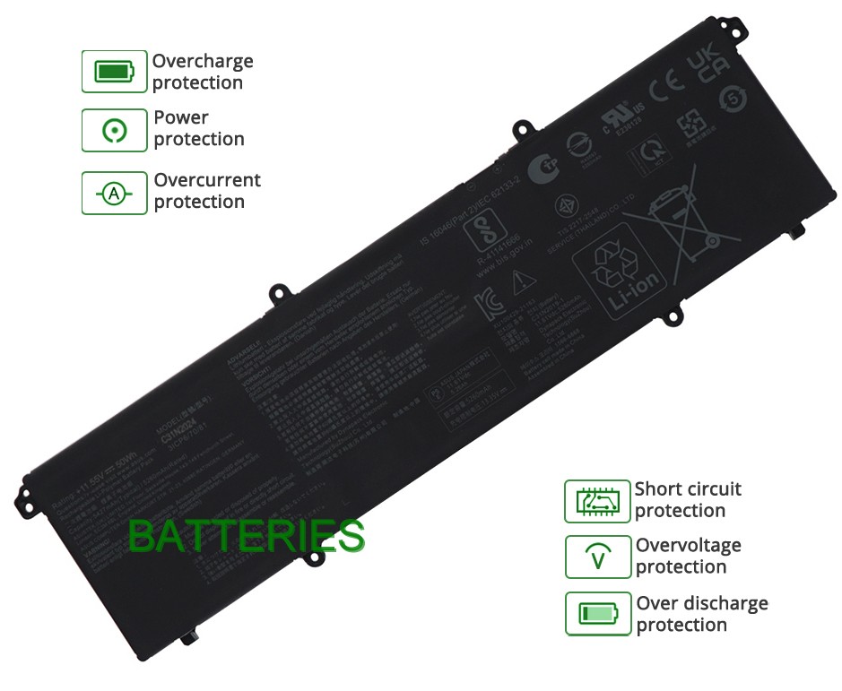 - Notre batterie ASUS TP3604V contient des cellules de batterie de qualité A pour assurer une durée de vie de la batterie plus longue et plus de cycles de charge.