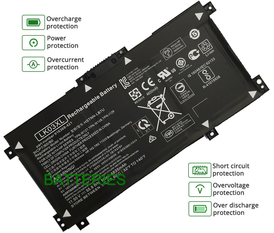 - Notre batterie HP PAVILION X360 15-CR0000 contient des cellules de batterie de qualité A pour assurer une durée de vie de la batterie plus longue et plus de cycles de charge.