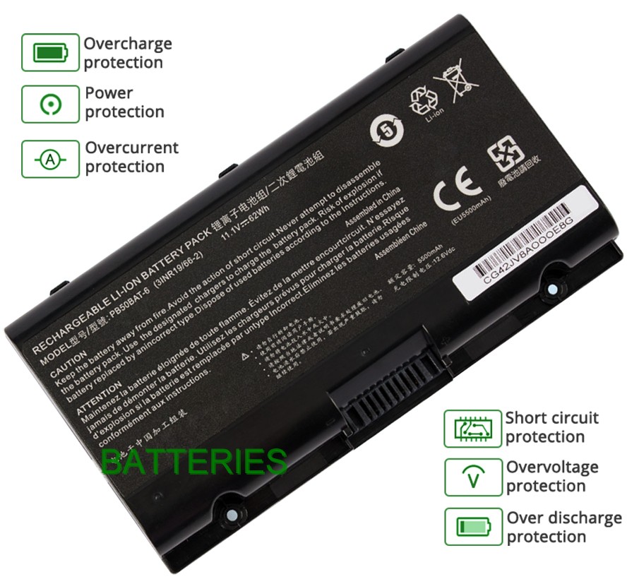 - Notre batterie SCHENKER XMG PRO 17-E20 contient des cellules de batterie de qualité A pour assurer une durée de vie de la batterie plus longue et plus de cycles de charge.